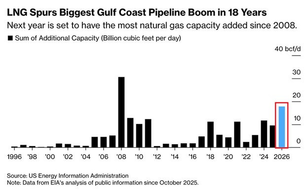 Gulf Coast Set for Record Natural Gas Pipeline Expansion in 2026