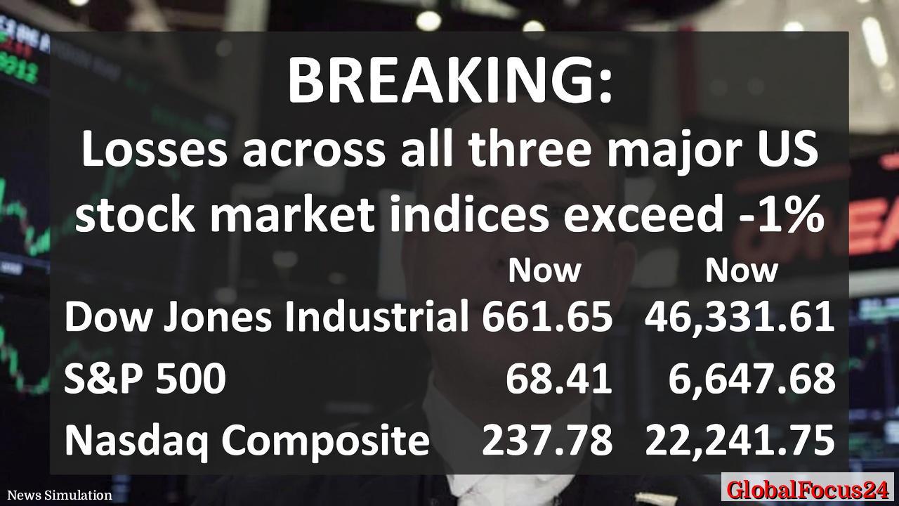 In a trading session defined by heightened geopolitical anxiety and persistent inflation signals, major U.S. stock indices closed with notable losses on Wednesday. The Dow Jones Industrial Average fell 661.65 points, down 1.41%, to 46,331.61. The S&P 500 retreated by 68.41 points, or 1.02%, ending at 6,647.68. The Nasdaq Composite declined by 237.78 points, or 1.06%, to 22,241.75. Traders cited a combination of escalating Middle East tensions, a firm read on producer prices, and ongoing concerns about the inflation trajectory as driving forces behind the broad market retreat.