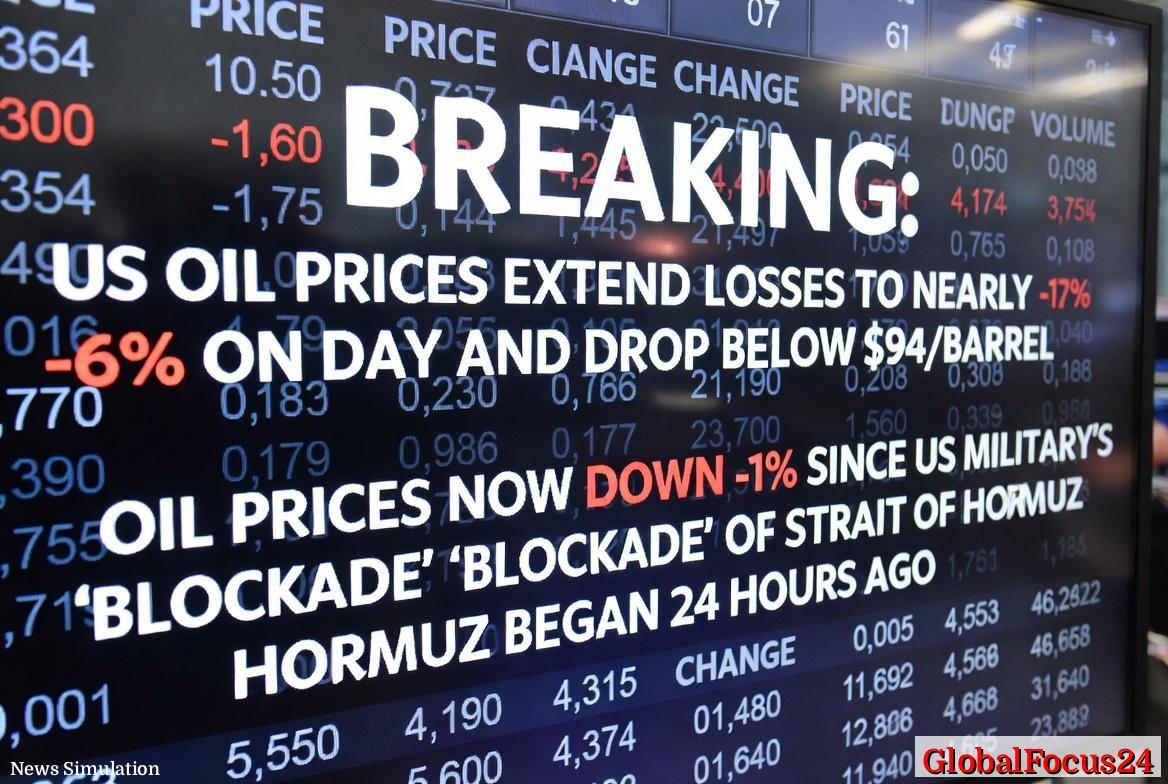 US oil prices extended losses on Tuesday, falling nearly 6% and slipping below $94$ dollars per barrel as traders continued to assess the fallout from the U.S. military blockade of the Strait of Hormuz. The benchmark crude has now fallen about $11%$ in just 24 hours, marking one of the sharpest short-term reversals in the energy market in recent months and underscoring how quickly geopolitical risk can reshape global commodity prices.