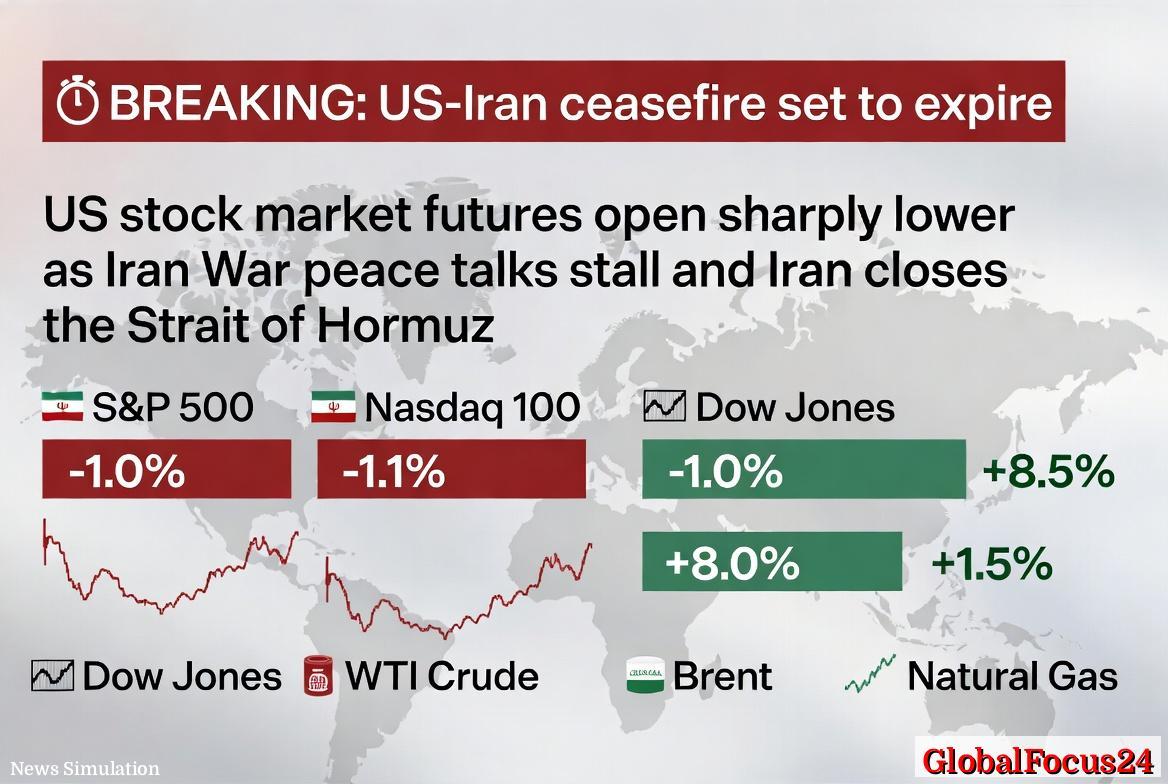 U.S. stock market futures fell sharply in early trading as escalating tensions in the Middle East rattled global investors, following reports that Iran has closed the Strait of Hormuz and ceasefire negotiations with the United States have stalled. The sudden geopolitical shock triggered a broad selloff across equities while sending energy prices sharply higher, underscoring the fragility of global markets amid renewed conflict risks.