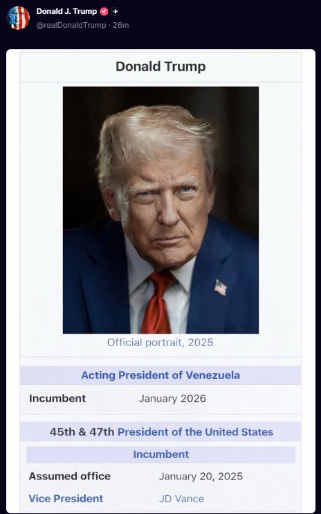 A surprising and controversial update to a public political profile has drawn international attention as former President Donald J. Trump lists himself as Acting President of Venezuela in a January 2026 profile update. The move, announced amid ongoing debates over Venezuelaâs leadership and electoral legitimacy, raises questions about constitutional succession, international recognition, and the potential implications for regional stability in Latin America.